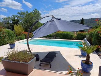 Villa Salernes - IN EXCLUSIVITY - Close to the village and opened view for this very beautiful bastide style house on 2 levels. On the ground floor, it consists of an entrance with guest WC, master bedroom with shower room, 2 other bedrooms, office, shower room, laundry room; on the garden level: spacious living room with bay windows opening onto terrace with pergola, open fitted and semi-equipped kitchen, master bedroom with patio door opening onto terrace, dressing room and bathroom. Garage, traditional heated swimming pool, technical room, on a 3,000 m² terraced plot ... Dominant position and quality services ... To visit without delay ...