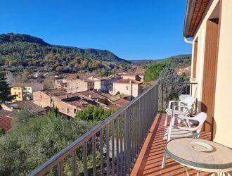 Appartement Salernes - Magnifique appartement en duplex comprenant une entrée avec buanderie / dressing et WC, un spacieux salon / séjour avec cuisine ouverte aménagée, 2 chambres avec chacune sa salle d'eau et WC. Le plus ? Une superbe terrasse tropézienne offrant une vue panoramique sur le village !